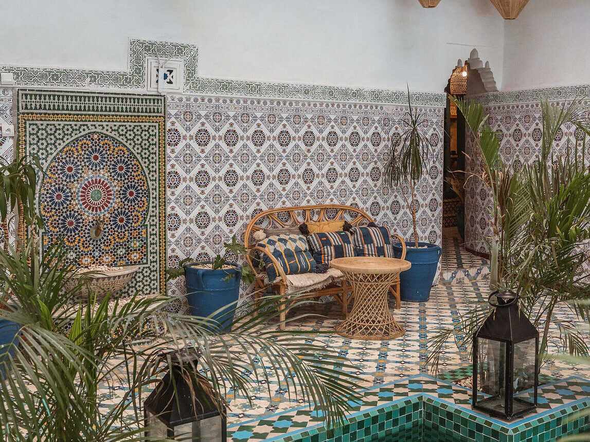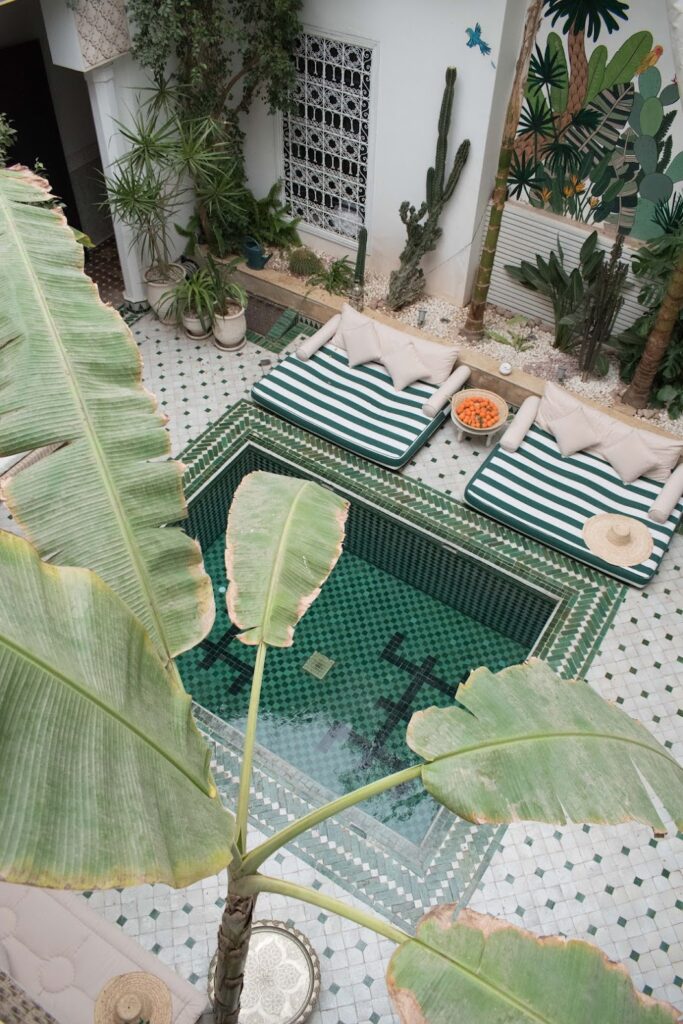 - Riads: Pequenas casas tradicionais com pátios internos, que oferecem uma experiência autêntica e muitas vezes incluem pequeno-almoço e decoração típica. Recomendações: Riad Yasmine, Riad BE Marrakech.